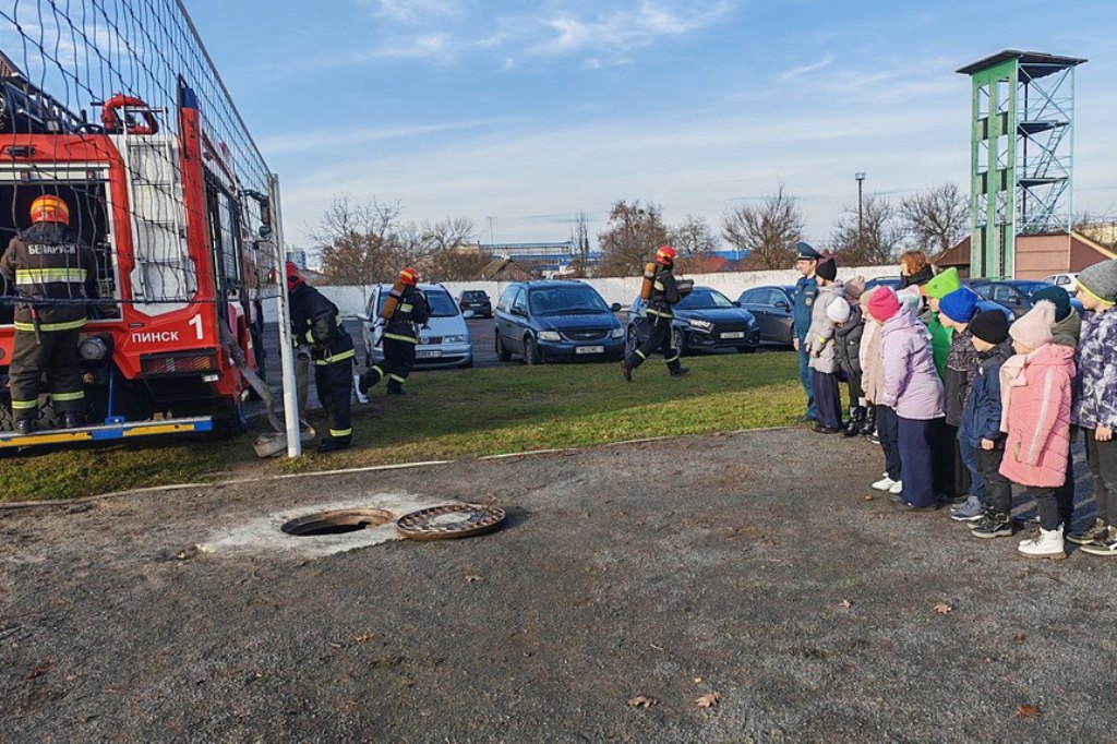 В Пинске учащиеся начальной школы посёлка Садовый побывали в пожарной аварийно-спасательной части №1 городского отдела по чрезвычайным ситуациям. Экскурсия была организована для повышения знаний детей о правилах безопасности и знакомстве с работой спасателей.